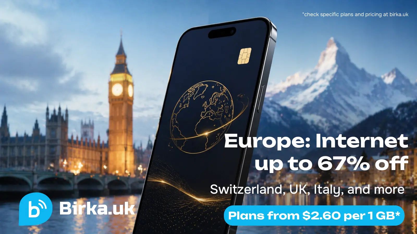 Just put the Birka card in your phone to activate! The operator badge will change immediately. Your card is ready to use. Your plan will be updated automatically when travelling between countries. No need to puzzle yourself with different plans!